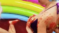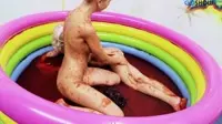 In a stunning scene of erotic bliss, the blonde and brunette temptresses indulge in an exquisite bathing experience, as their sensuality unravels itself in the depths of the redtinted tub.The inflatable pools vibrant colors perfectly complement the atmosphere of sheer lust that these two women are about to unleash upon each other.The blonde seductress starts off by teasing her brunette companion with playful splashes and innocent laughter.However, it doesnt take long for their innocent giggles to turn into heavy breaths as they slowly caress one another, feeling the electricity of desire coursing through their veins.The brunette reaches out for her lovers firm buttocks and pulls her in closer, creating an intense connection between these two lesbian girlfriends.The blonde begins to explore her partners womanhood with an expert touch, skillfully moving from her labia to the sensitive clit.The brunettes eyes glaze over as she surrenders herself entirely to her temptress, who slowly spreads her legs open, inviting her lover deeper into her wet and juicy core.The erotic bath scene unfolds with lush scenes of these two women, bathed in red light, their boobs pressed together in a passionate embrace.The blondes hands glide over the brunettes nipples while her tongue eagerly explores the wet and juicy crevices below.As the women begin to moan in ecstasy, it is apparent that the bath has now become an oasis of lesbian pleasure.The blonde and brunette engage in an intimate game of fingering each others labia and clit as they feel the wetness between their fingers, lubricating themselves in preparation for more intense moments to come.The seductresses exchange playful smiles, knowing that their bath has now transformed into a liquid paradise filled with euphoric happiness.The sensuality continues to build up as both women indulge in kinky outfits, wearing stockings and lingerie, accentuating the beauty of their naked bodies.The blonde takes the opportunity to passionately kiss her brunette lover, her tongue delving deep into the warmth of her mouth, sharing their passion like never before.The lesbian couple then takes a break from their watery playground, stepping out of the tub and onto the vibrant inflatable pool.Their hands glide over each others bare skin, teasing, fondling, and admiring the beauty they hold in their palms.The blondes boobs press against her lovers as they kiss passionately under the warm sun, feeling a connection that transcends the boundaries of time itself.Within this world of lust and temptation, the two womens love for one another grows ever stronger, culminating in an erotic scene that pushes their desires to new heights, as they explore the realms of happiness and passion in the depths of their lesbian bond.